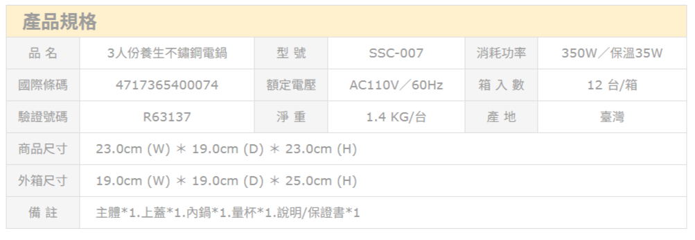 消耗功率: 350W/保溫35W