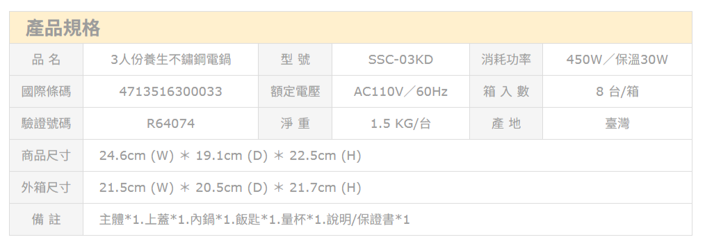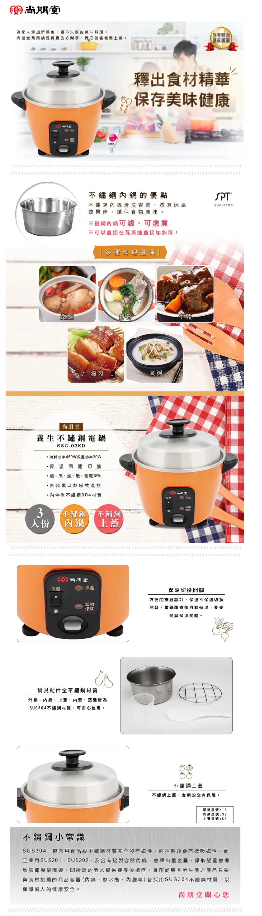 SPT 尚朋堂 3人份養生不鏽鋼電鍋(SSC-03KD)