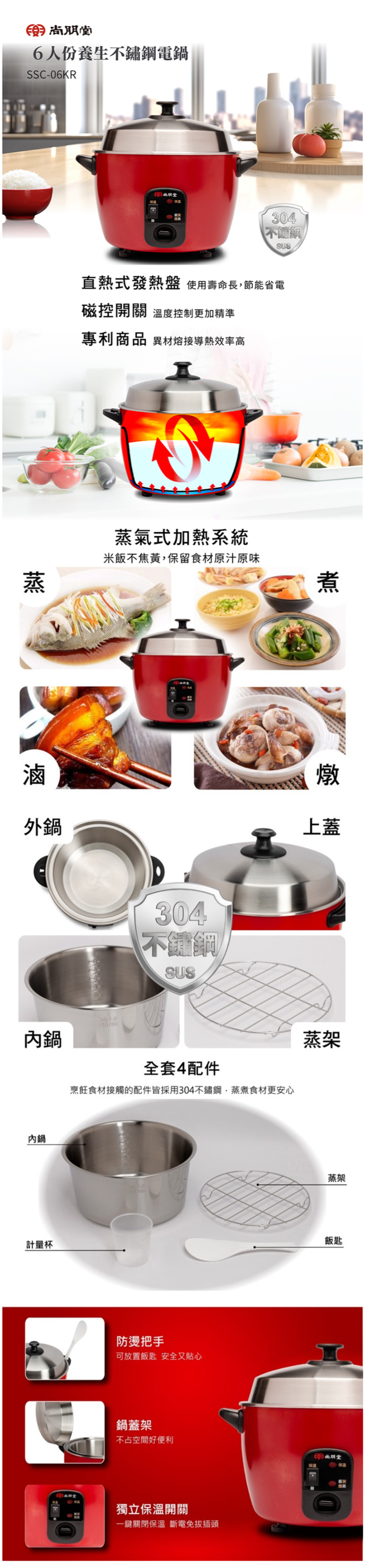 內鍋、配件全不鏽鋼材質