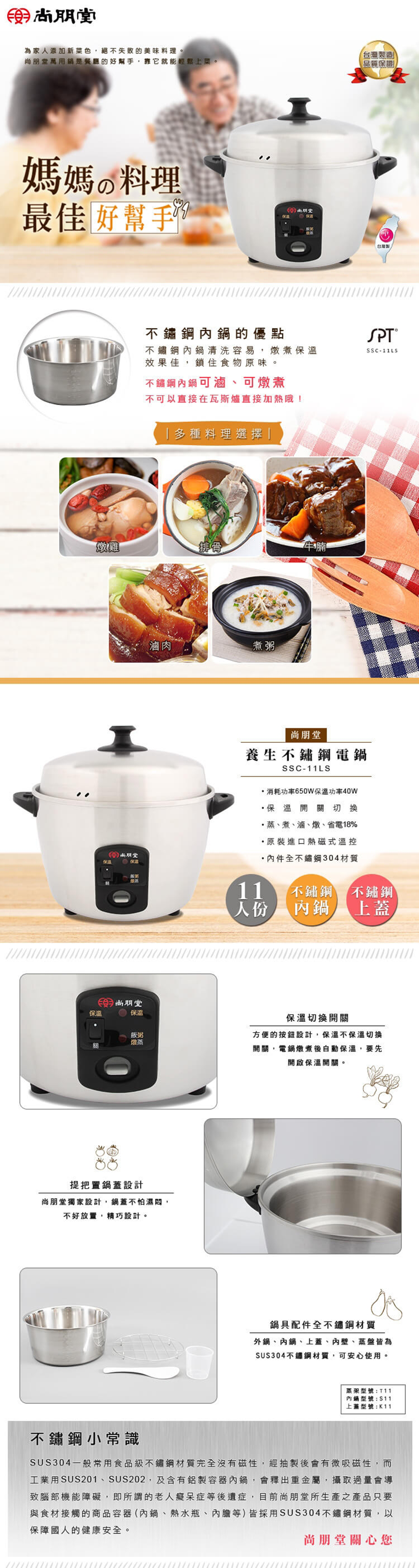 蒸、煮、滷、燉、省電18%,保溫開關切換