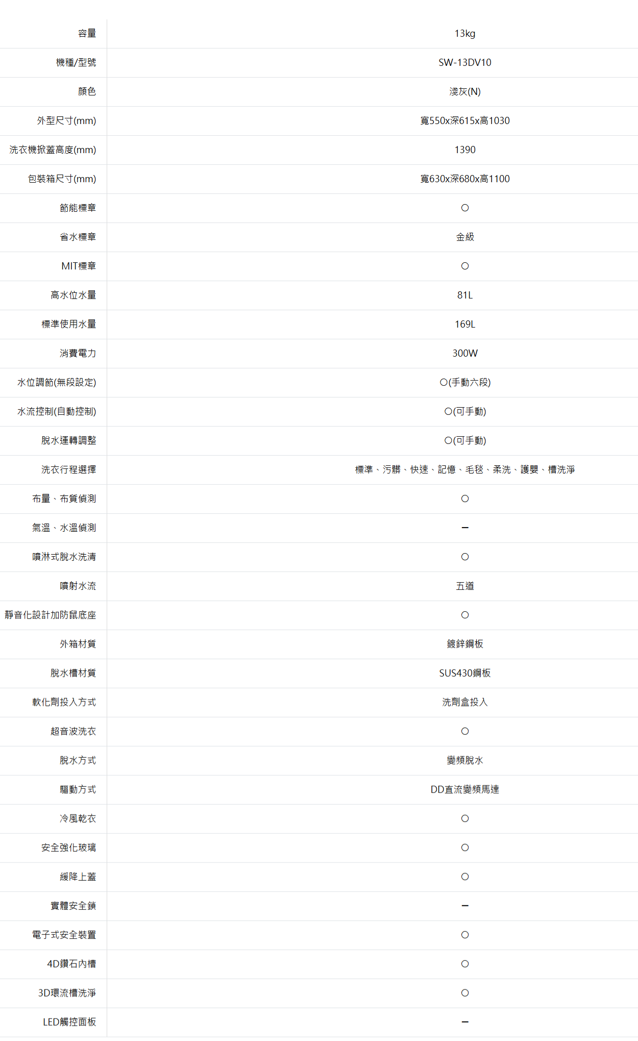 SANLUX 台灣三洋 13KG 直流變頻超音波洗衣機 淺灰(SW-13DV10-N)