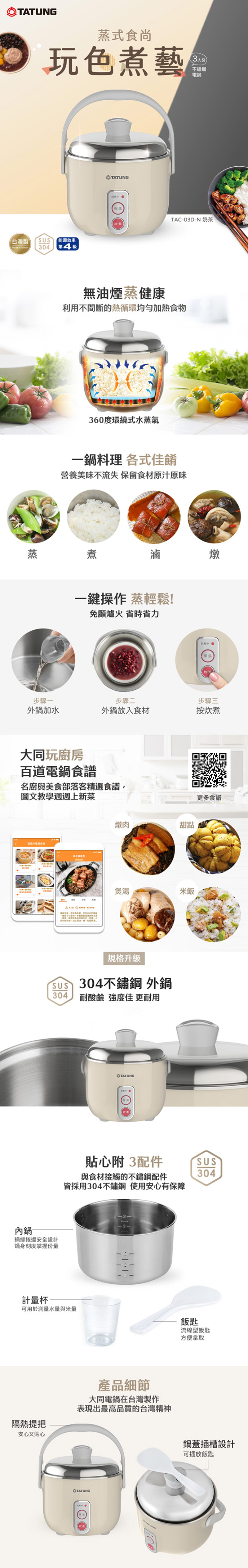 內外鍋均為SUS 304 不鏽鋼
