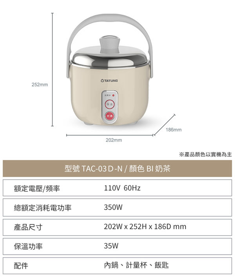 3人份電鍋,奶茶色外殼