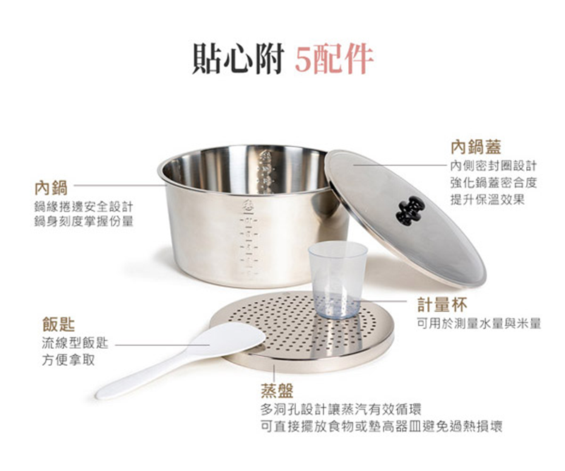 鍋蓋、內鍋、內鍋蓋、蒸盤