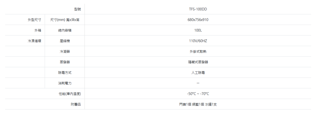 溫控範圍 : -50°C ~ -70°C溫度液晶數位顯示