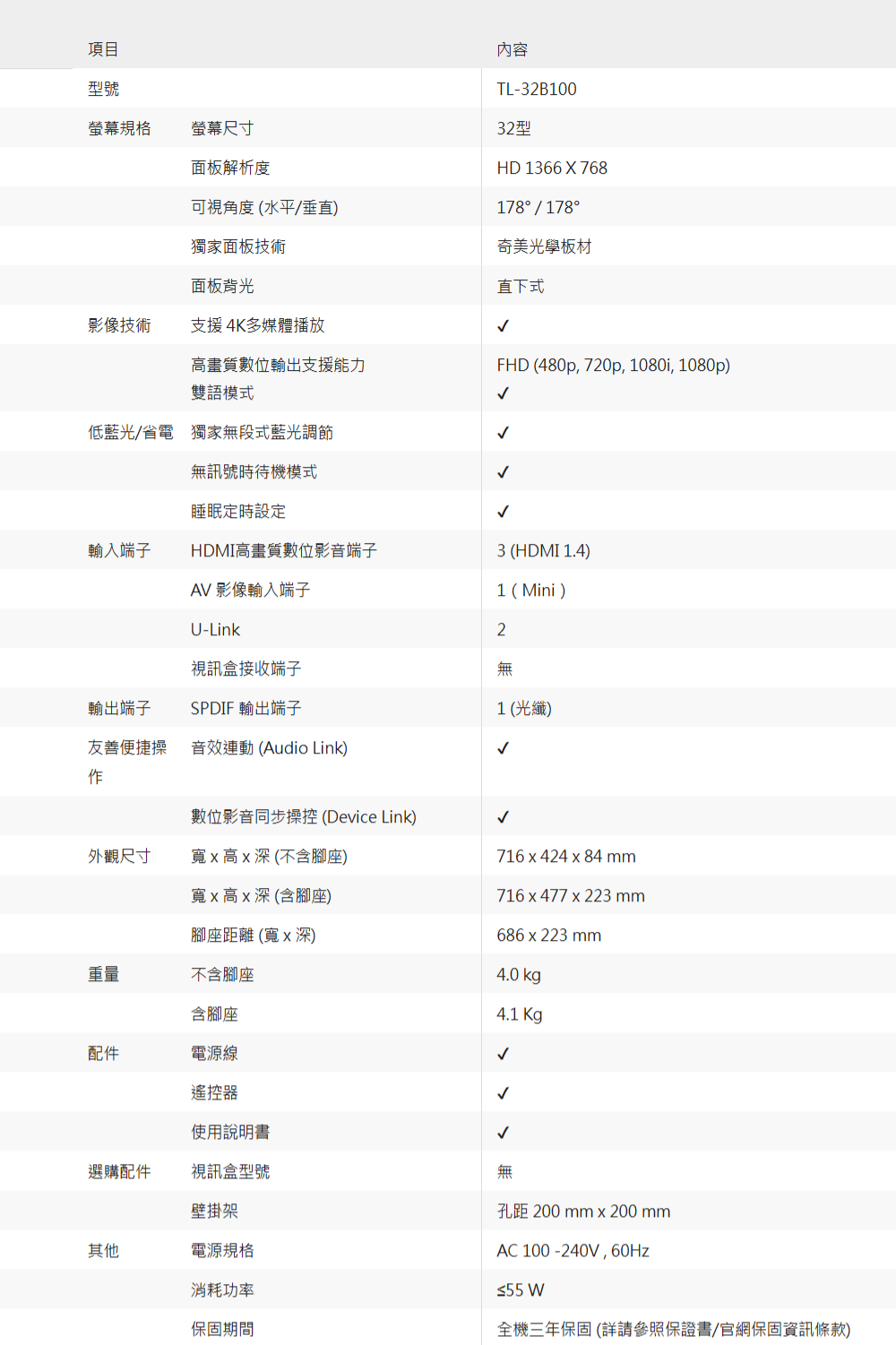 面板解析度 : HD 1366 X 768