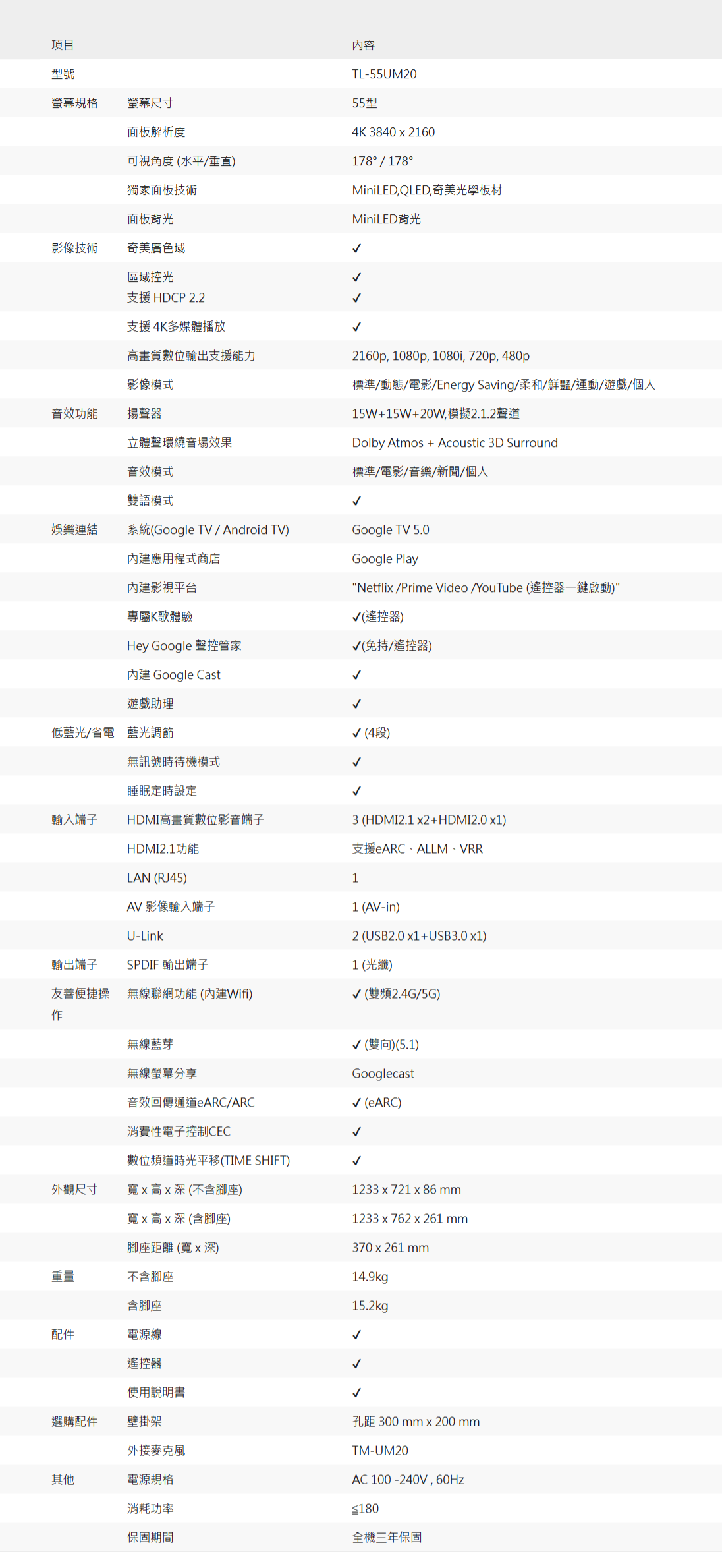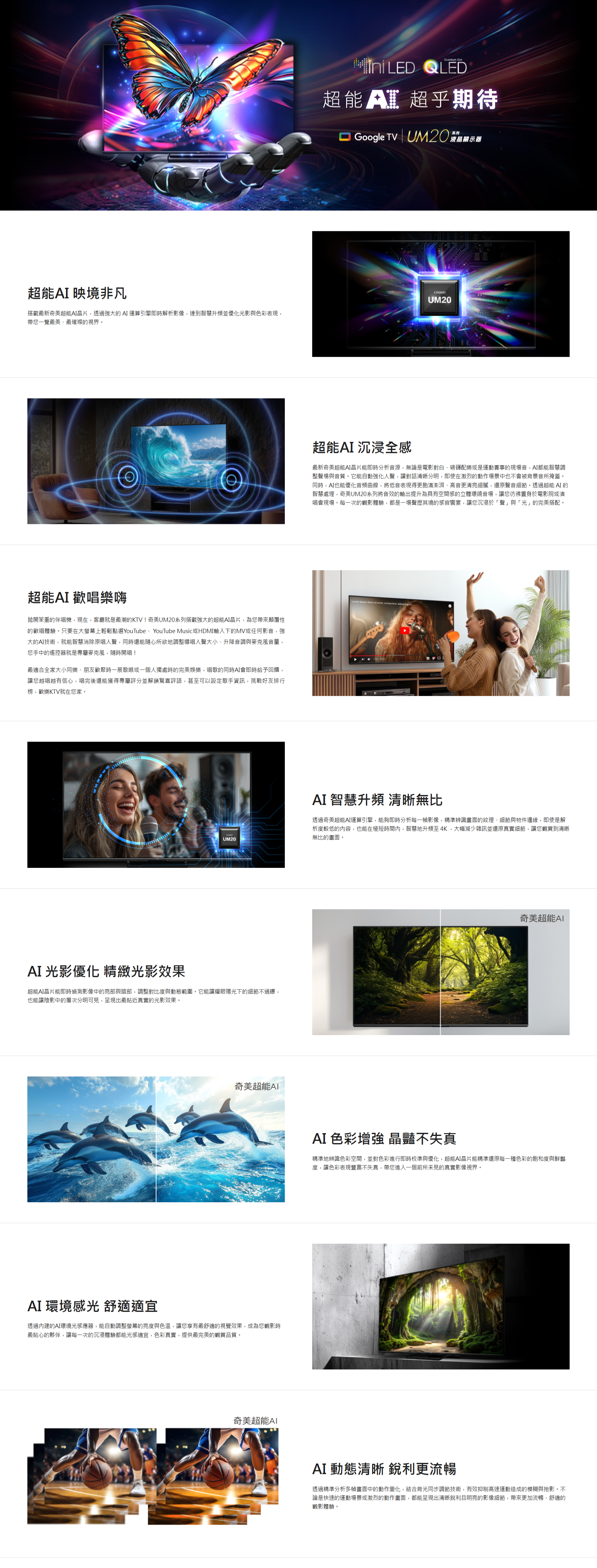 (可議價)CHIMEI 奇美 55吋 AI 4K MiniLED Google TV液晶顯示器(TL-55UM20)