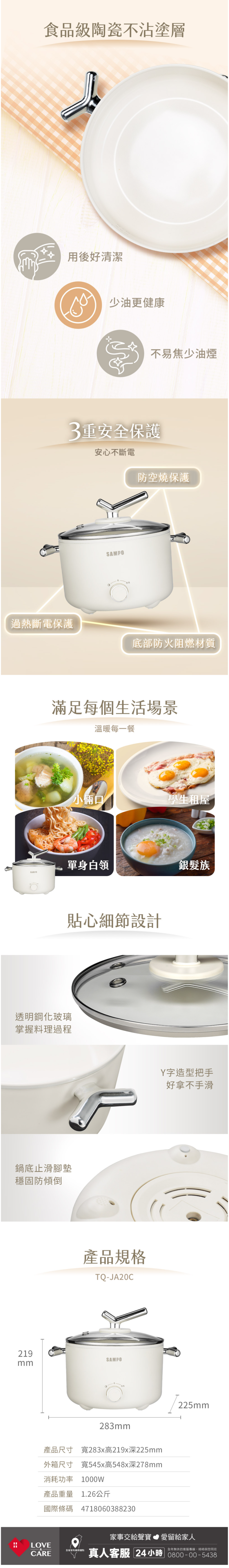 內膽採用食品級陶瓷不沾塗層,清潔不費力