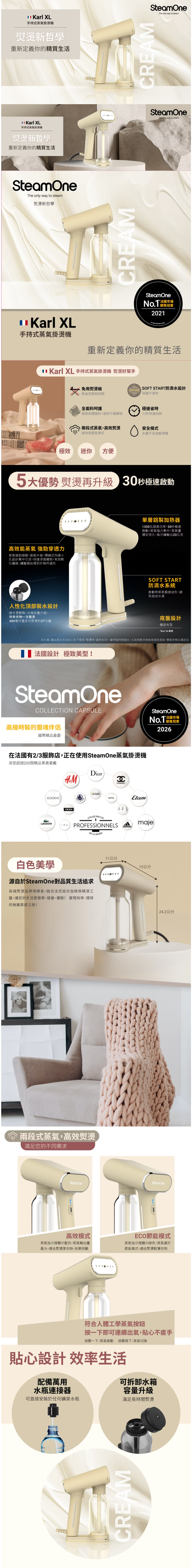 SteamOne Karl XL 手持式掛燙機 奶油白 (TWXL4600C)