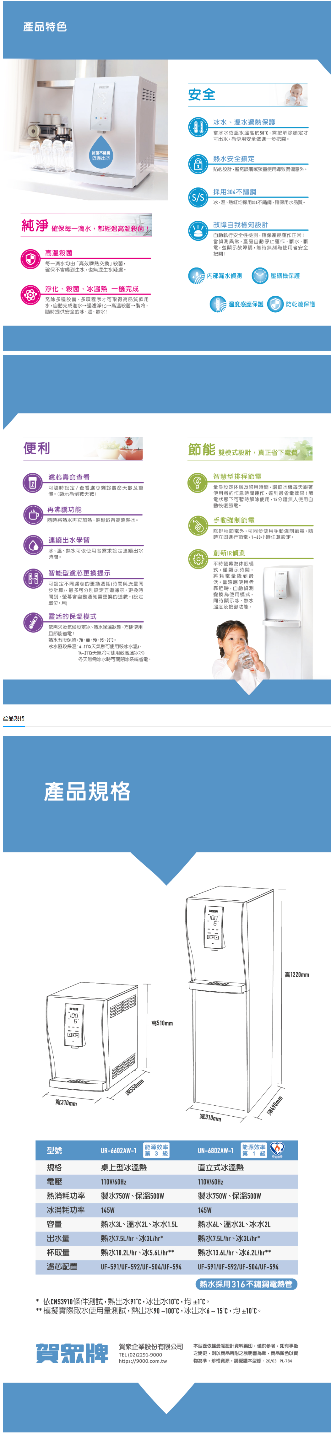 ACUO 賀眾牌 [冰溫熱] 直立式極緻淨化飲水機(UN-6802AW-1)
