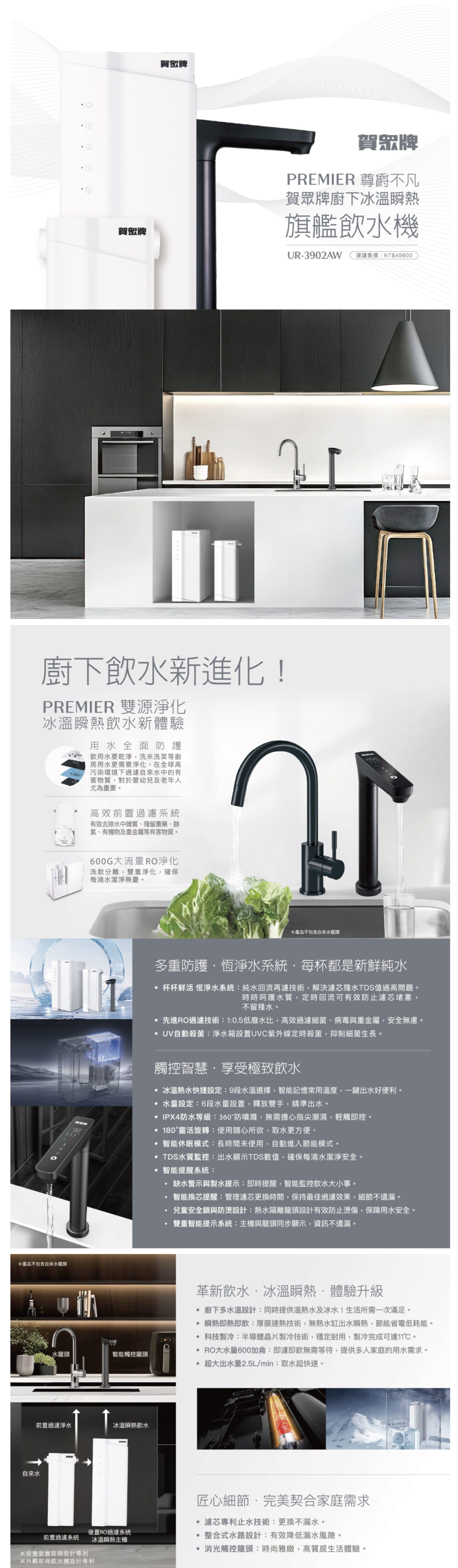 廚下多水溫設計,同時提供溫熱水及冰水!
