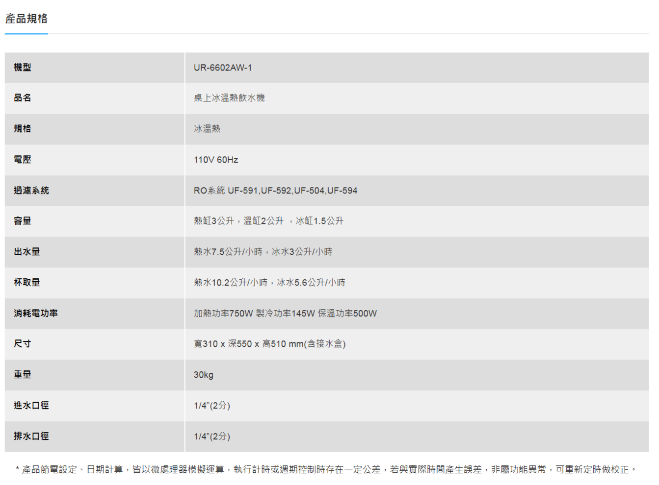 ACUO 賀眾牌 桌上型極緻淨化飲水機(UR-6602AW-1)