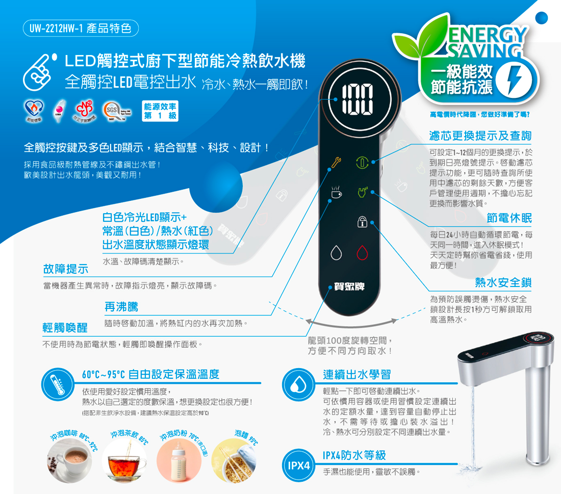 全觸控LED電控出水,冷水、熱水一觸即飲!