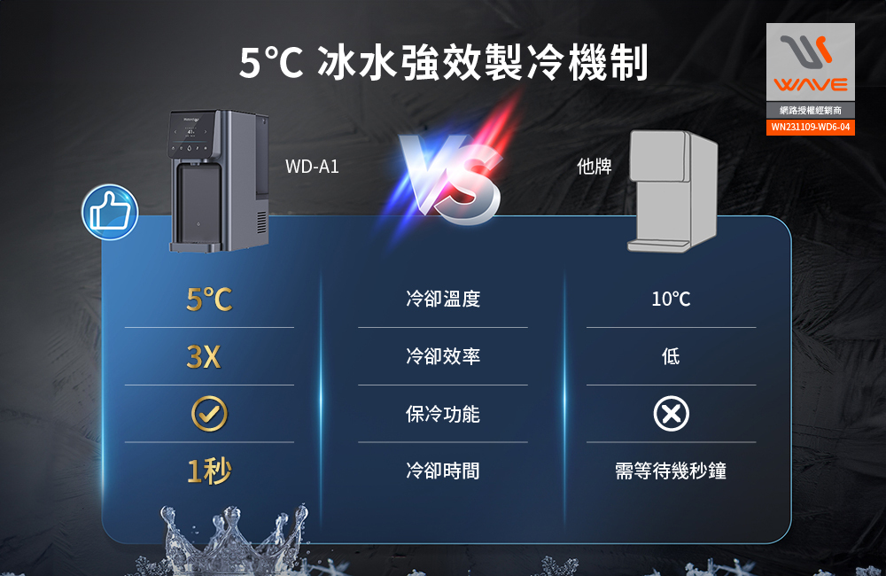 5℃ 冰水強效製冷機制,快速冷卻達冰箱等級