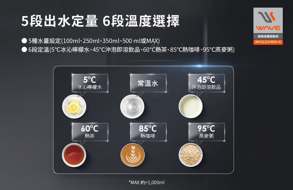 水溫設定、定量出水、TDS值 、外出/夜間模式設定,
