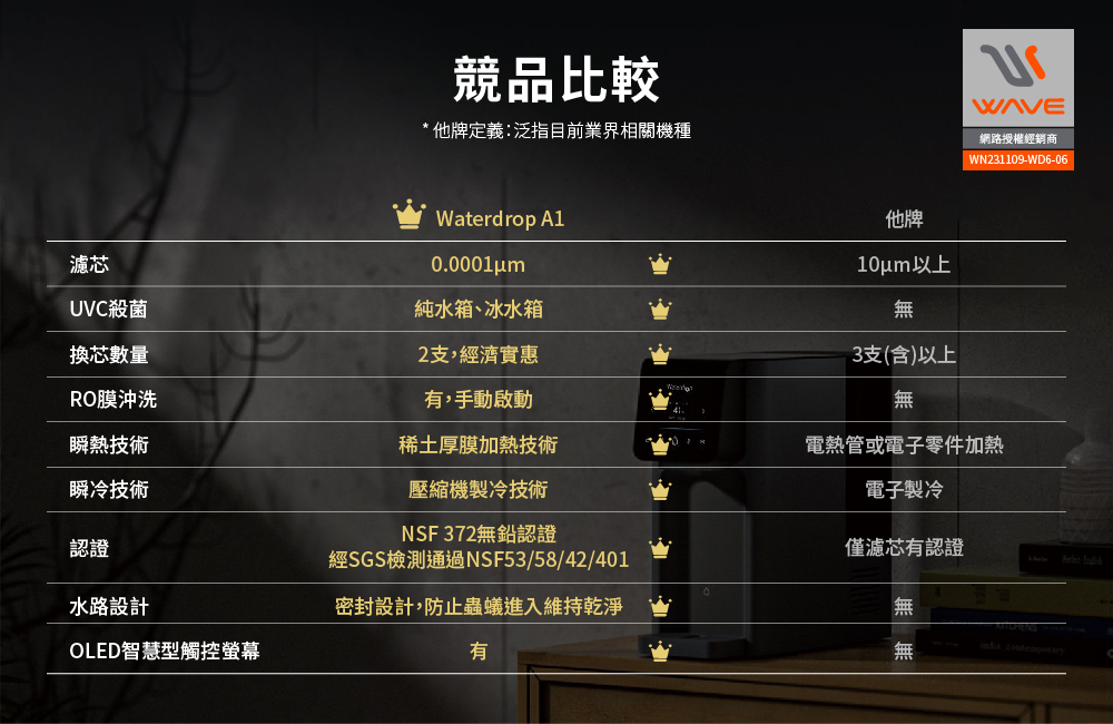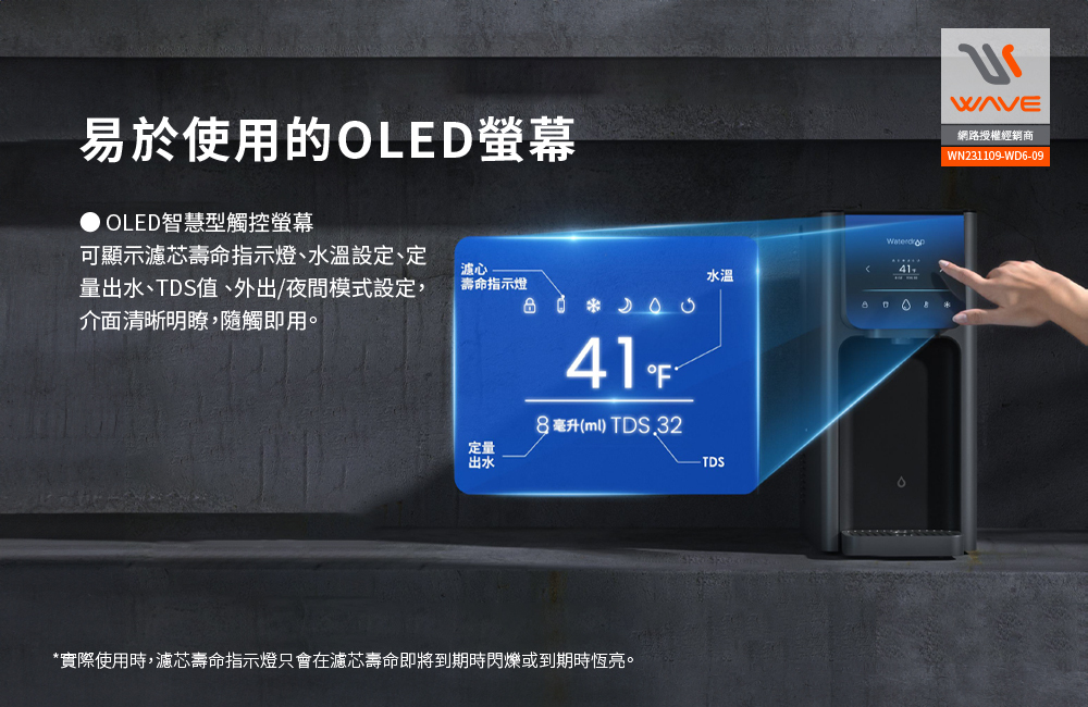 OLED智慧型觸控螢幕:可顯示濾心壽命指示燈、