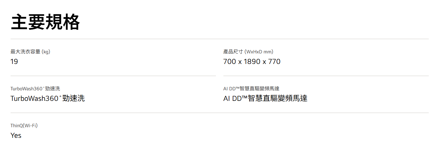 19公斤洗衣機:AI DD™直驅變頻馬達