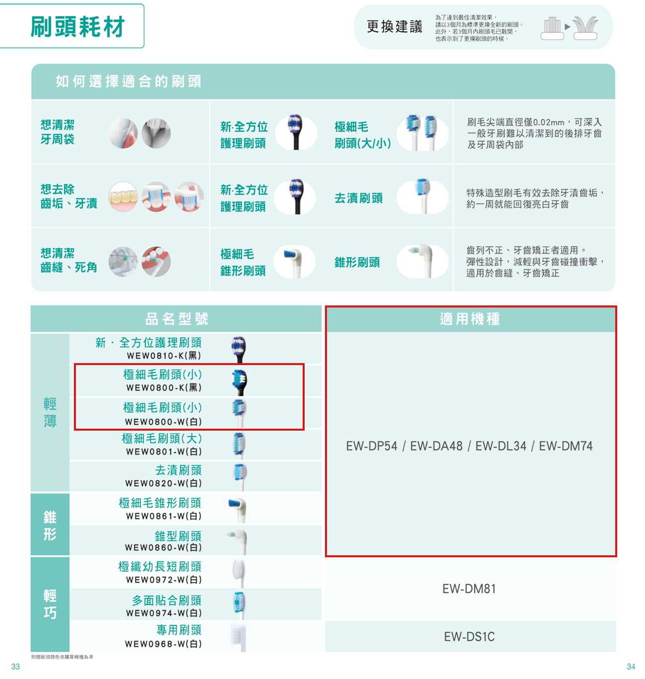 適用機種電動牙刷:EW-DP54/EW-DA48 / EW-DL34 / EW-DM74