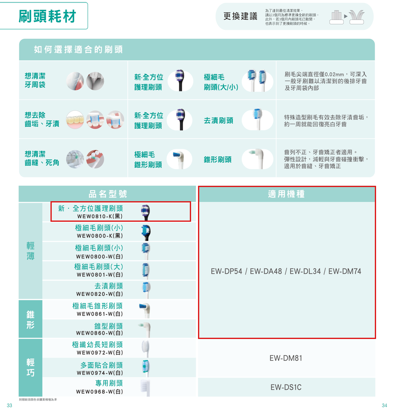 適用機種電動牙刷:EW-DP54/EW-DA48 / EW-DL34 / EW-DM74