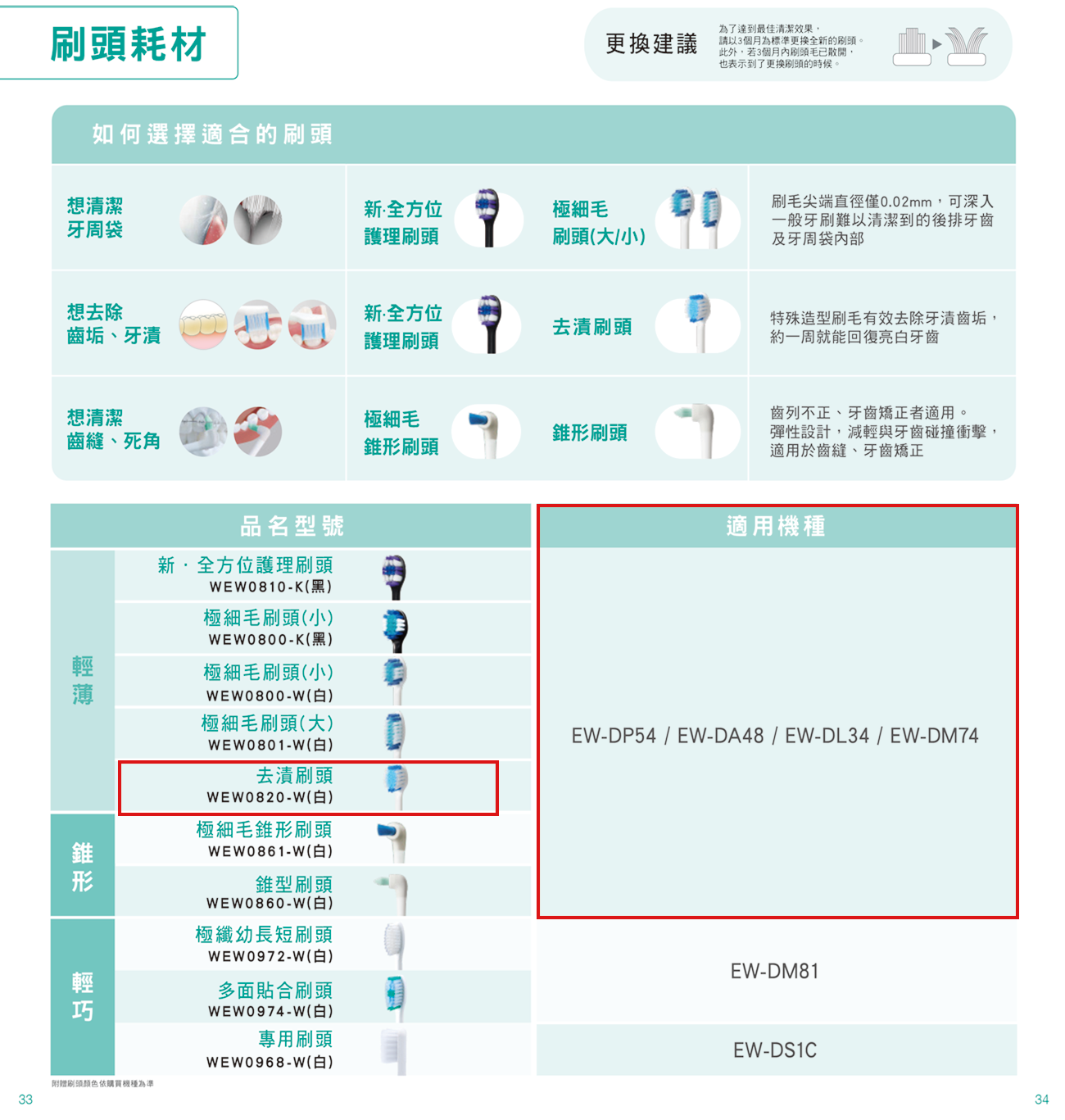 適用機種電動牙刷:EW-DP54/EW-DA48 / EW-DL34 / EW-DM74